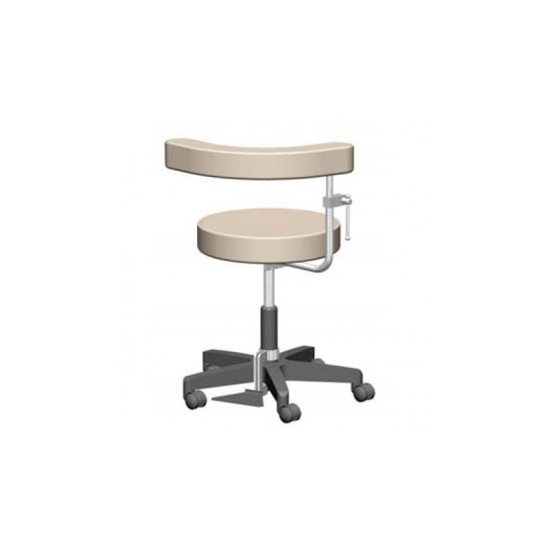 Apoyo para el cuerpo ò respaldo acojinado con espuma de poliuretano densidad 27kg/m3 forrado en vinilo, altura ajustable y giro independiente, con palanca para fijar apoyo.